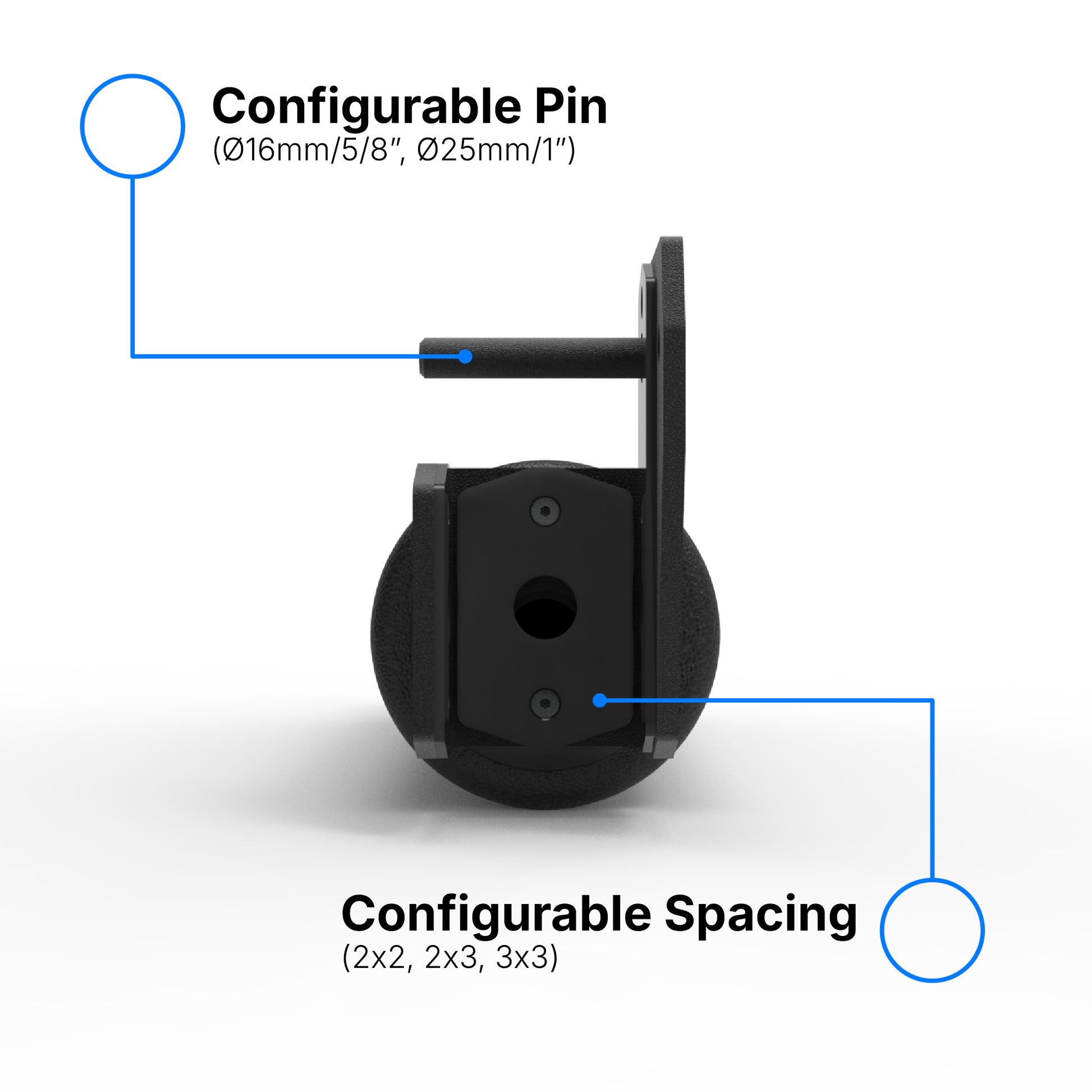 Our Leg Roller was designed for our 3" x 3" racks and can be adjusted to any size of upright. Our leg roller is designed with the same engineering structure to our utility horns. Our major difference is utilizing a framed bracket to keep the item in place.