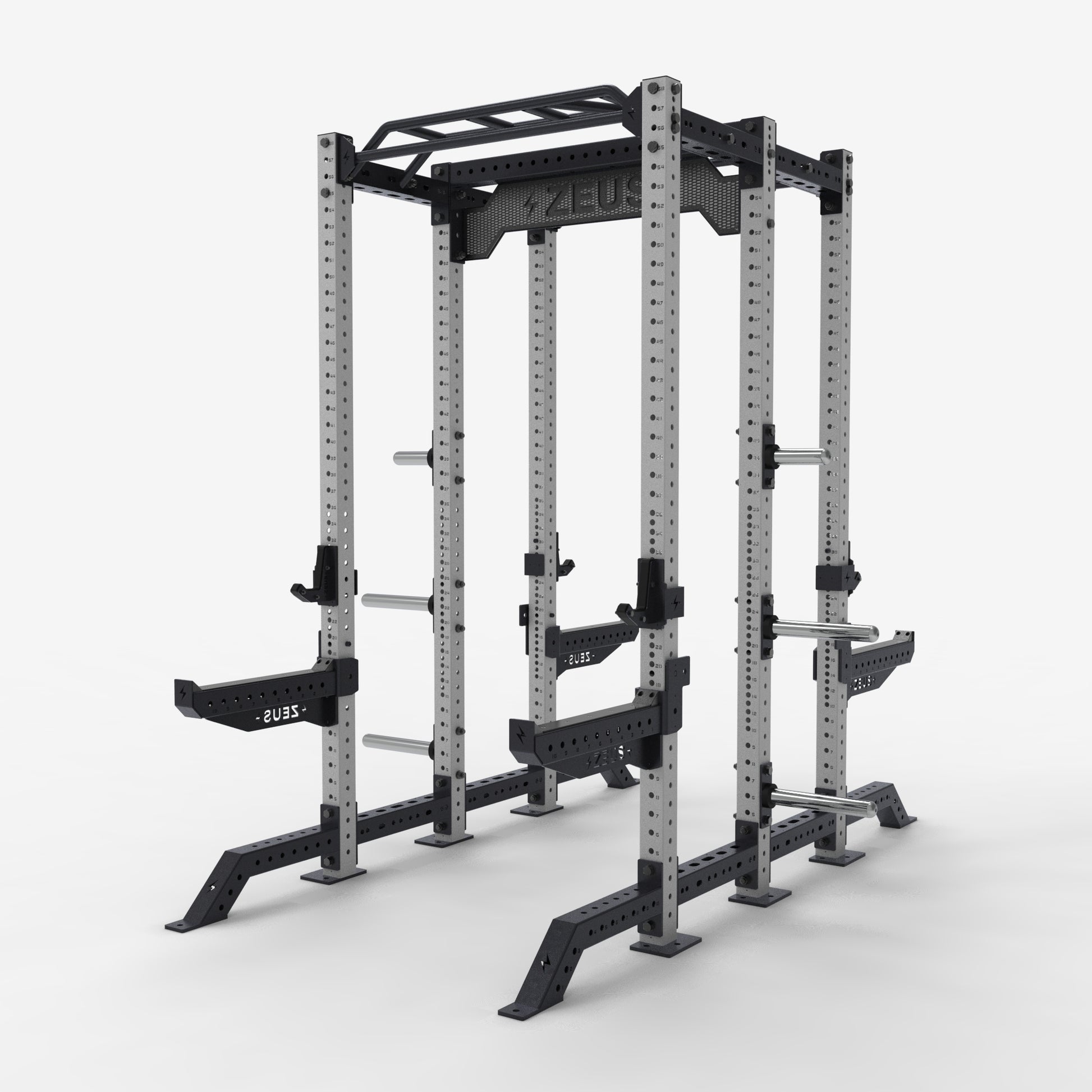 Our XT lineup features burly 75mm square tube with 16.5mm holes. Numbered holes are spaced every 50mm except through the bench press zone where Westside Spacing of 25mm gives you more adjustability for different athletes.